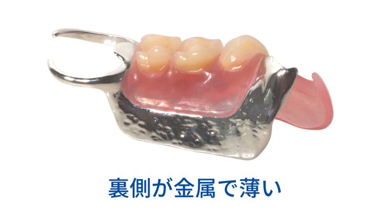 裏側に金属を使うと硬くて痛いのでは?と思うかもしれませんが、「金属床+ノンメタルクラスプ」は痛くありません。